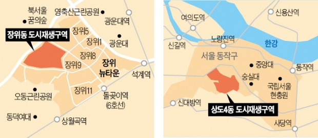 뉴타운 구역 해제로 진통을 겪은 서울 성북구 장위동이 도시재생 사업으로 다시 태어난다. ‘골목마다 이야기를 품은 마을’을 목표로 내년까지 100억원이 투입된다. 동작구 상도4동에서도 ‘함께사는 골목동네’를 비전으로 100억원 규모의 재생사업이 시작된다. 문재인 정부가 ‘도시재생 뉴딜정책’에 시동을 거는 가운데 서울시가 도시재생 시범사업으로 내놓은 사업인 만큼 도시재생 방식의 윤곽을 가늠할 수 있는 시금석이 될 전망이다.
