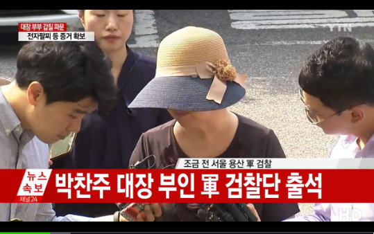 공관병을 하인처럼 부리며 '갑질'을 일삼았다는 의혹이 제기된 박찬주 대장 부인이 오늘 군 검찰의 소환 조사를 받기 위해 출석했다.