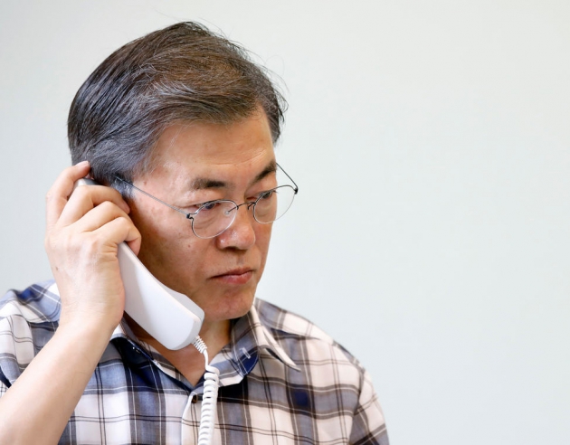 문재인 대통령이 7일 오전 청와대에서 도널드 트럼프 미국 대통령과 통화했다.