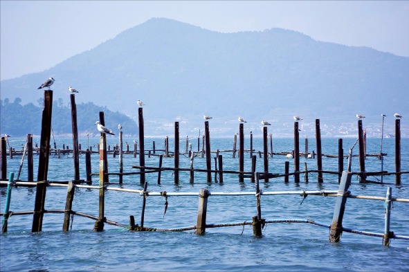 죽방렴이란 대나무를 엮어 만든 그물, 혹은 대나무 통발이라고 보면 된다. 참나무 말뚝을 브이(V)자로 박아 나열하고 그 안에 대나무로 그물을 엮어 물고기가 들어오면 V자 끝에 설치된 통발에 갇혀 빠져나가지 못하게 해서 잡는 어법이다. 주로 조수간만의 차가 크고 물살이 세고 수심이 얕은 곳에 설치한다. 지족해협의 죽방렴은 조선 예종 때의 문헌 《경상도속찬지리지》에도 그 기록이 남아 있는 500년 이상 이어온 전통 어법이다. 죽방렴에서 잡힌 물고기는 신선도가 높아 고가에 거래된다. 그렇다면 죽방렴을 닮은 저 멸치어장은 뭘까? 물고기를 잡는 원리는 죽방렴과 같다. V자로 말뚝을 박는 것도 같다. 다만 그 안을 대나무발이 아니라 나일론 그물로 채우는 것이 다르다. 그러니 죽방렴이라 할 수 없는 것이다. 이렇게 또 하나의 의문이 풀렸다. 하지만 멸치는 죽방렴과 같은 방식으로 잡는다. 게다가 값은 말할 수 없이 저렴하지만 맛은 뛰어나다. 죽방렴 아닌 죽방렴. 신수도 바다가 주는 선물이다.