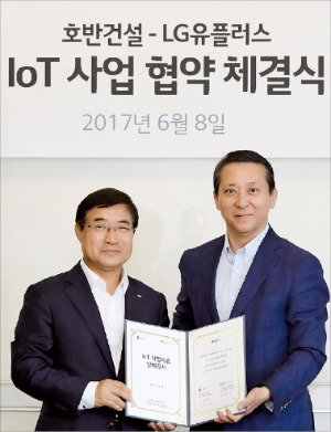호반건설은 지난 6월 LG유플러스와 ‘홈 IoT 시스템 구축’ 업무 협약식을 열었다. 호반건설이 공급하는 아파트 브랜드인 ‘호반 베르디움’에 유·무선 통합형 IoT 시스템을 구축하기 위해서다. 홈 IoT 플랫폼은 기존 홈 네트워크와 LG유플