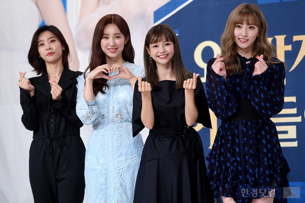 그룹 걸스데이 소진, 배우 차정원, 하연수, 그룹 베스티 해령이 18일 오후 서울 영등포 타임스퀘어 아모리스홀에서 열린 스튜디오 온스타일 ‘오! 반지하 여신들이여’ 제작발표회에 참석해 포토타임을 갖고 있다.
