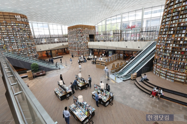 신세계프라퍼티에서 운영하는 복합쇼핑몰 스타필드 코엑스점은 지난 5월31일 쇼핑몰 한복판(센트럴플라자 중심)에 책 5만권과 잡지 600여종을 비치한 2800㎡(약 850평) 규모의 대형 도서관 '별마당'을 만들었다. 다른 쇼핑몰이라면 'H&M'이나 '유니클로' 같은 최신 유행의 SPA(제조유통일괄) 브랜드나 스마트폰을 판매하는 전자제품 매장 등이 있는 알짜 공간이다.