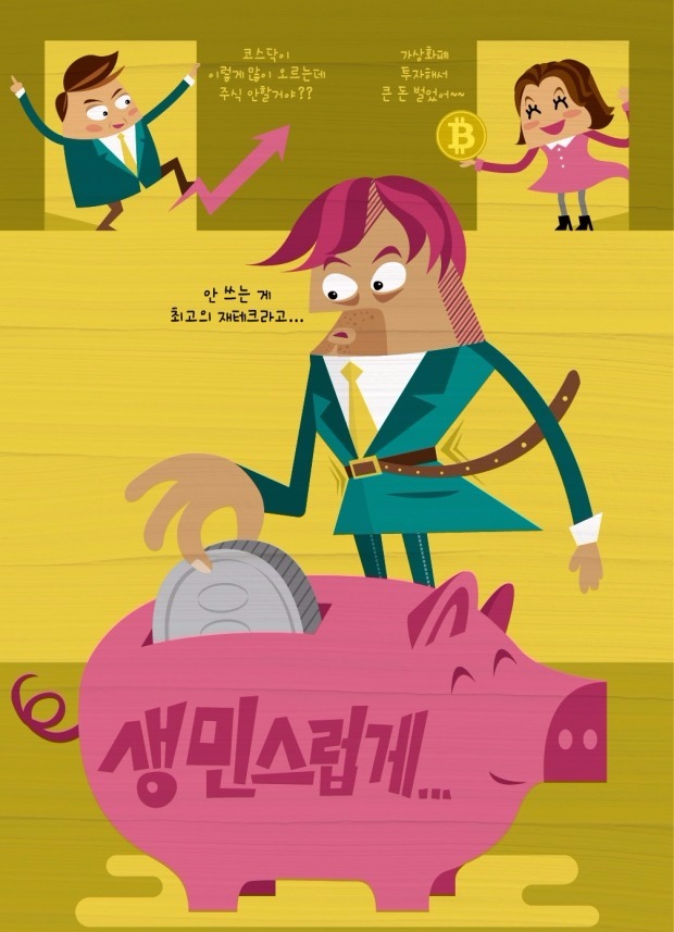 ‘통장요정’ 김생민 효과로 “안 쓰는 게 최고의 재테크”라는 주장도 힘을 얻고 있다. 방송인 김생민은 청취자의 한 달 치 영수증을 분석하며 각 소비내역을 평가하는 프로그램인 ‘김생민의 영수증’으로 최근 직장인 사이에서 인기를 얻고 있다. ‘커피는 선배가 사줄 때 먹는 것이다’ ‘안 사면 100% 할인이다’ 등이 ‘김생민 어록’으로 통할 정도다. 이를 따라 하는 직장인도 많아지고 있다. 여론조사회사에 다니는 최 대리는 아침마다 집에서 내린 커피를 텀블러에 담아 출근한다. “하루 평균 커피값 5000원을 한 달 동안 아끼면 10만원이 굳는다”는 생각에서다. “어느 은행 적금의 이율이 더 높은지, 무슨 주식을 언제 사서 언제 팔지 고민하는 것보다 훨씬 쉽다”고 했다.