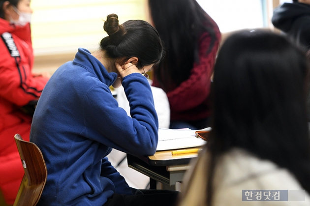 '2018학년도 대학수학능력시험'이 치러지는 23일 오전 서울 여의도동 여의도여고에 마련된 서울특별시교육청 제 13수험지구 제13시험장에서 수험생들이 마지막까지 공부를 하고 있다.