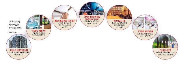 부동산개발업체인 피데스개발은 한국갤럽 등과 공동으로 벌인 미래주택설문조사, 소비자간담회, 세계 각국의 트렌드 조사 등을 토대로 ‘2018~2019년 주거공간 7대 트렌드’를 6일 발표했다. 주거공간 대안(옵션 B) 전성시대, 도심 공간 퍼즐 교체(비주거 시설의 주거단지화), 집 근처에서 대부분 시간을 보내는 올인빌(all in vill) 부상, 횰로(나홀로 욜로) 공간 수요 증가, 초지능·초연결 플랫홈(platform+home) 등장, 주거공간 질적 전환, 안전주택 선호 등이다.