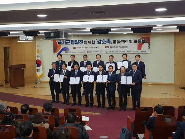 8개 광역자치단체는 5일 국회의원회관에서 지역발전위원회 주관으로 국가 균형발전 정책 반영을 위한 ‘강호축 공동토론회’를 개최했다고 밝혔다.