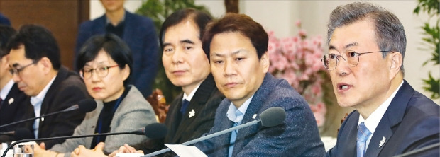 문재인 대통령은 5일 “대통령 자문기구인 정책기획위원회가 중심이 돼 국민 의사를 수렴하고 국회와 협의할 대통령 개헌안을 준비해달라”고 말했다. 문 대통령은 이날 수석보좌관회의를 주재하면서 “이제 대통령도 국민 의견을 수렴하는 등 개헌 준비를 시작할 수밖에 없다”며 이같이 밝혔다. 6·13 지방선거와 개헌 국민투표 동시 시행을 주장해온 문 대통령이 평창동계올림픽과 외교안보 이슈에 묻히기 전에 ‘개헌 승부수’를 던진 것으로 해석된다.