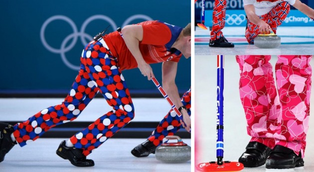 노르웨이 컬링팀은 이번 올림픽 기간에도 독특한 패션을 선보였다. 이들은 경기마다 눈길을 끄는 일명 '미친 바지(Crazy Pants)'라고 불리는 패션으로 유명하다.
