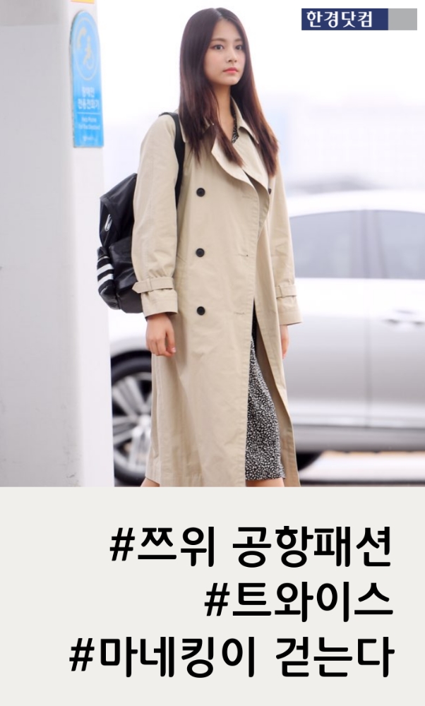 트와이스 쯔위가 가벼운 트렌치코트 차림 공항패션으로 성큼 다가온 봄을 느끼게 했다.