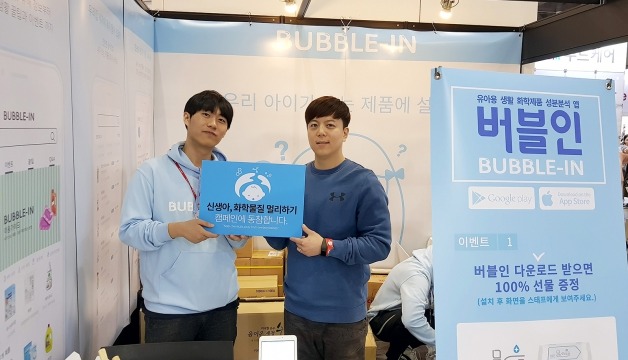 ‘버블인(BUBBLE-IN)’은 생활 속 화학제품의 유해성분 정보 쉽게 알 수 있도록 도와주는 스마트폰 애플리케이션으로 육아맘에게 제품 속 화학성분에 대한 알 권리를 충족시키고 아기 건강과 안전에 도움을 주려는 목적으로 개발됐다.