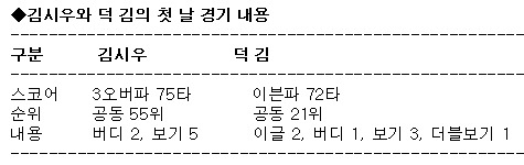 전반을 각 2오버파(김시우), 3오버파(덕 김)로 마친 두 선수의 명암은 후반에 갈렸다. 특히 지난해 US아마추어골프챔피언십에서 2위를 한 덕 김의 뒷심이 돋보였다.