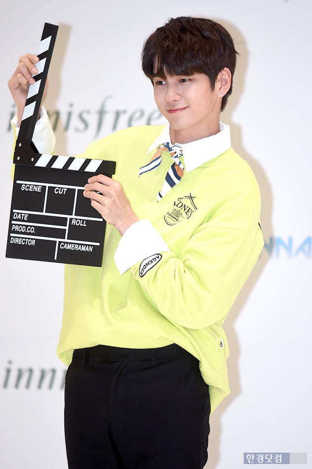 그룹 워너원 옹성우가 28일 오후 서울 용산 아모레퍼시픽 사옥에서 열린 '워너원고 in 제주(JEJU)' 비하인드 상영회에 참석해 포토타임을 갖고 있다.