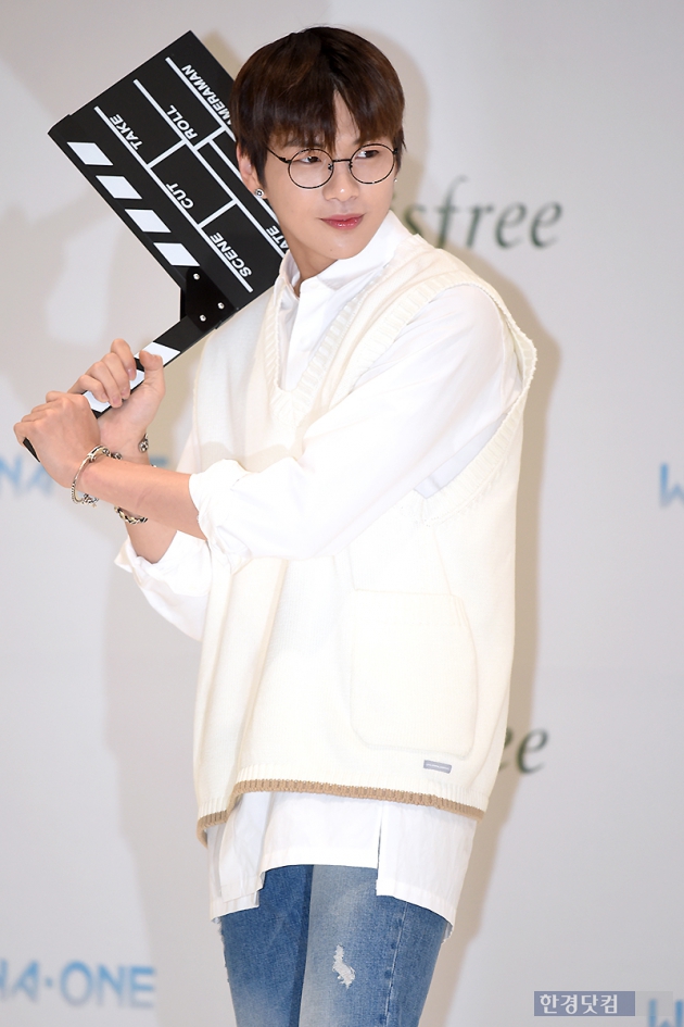그룹 워너원 강다니엘이 28일 오후 서울 용산 아모레퍼시픽 사옥에서 열린 '워너원고 in 제주(JEJU)' 비하인드 상영회에 참석해 포토타임을 갖고 있다.