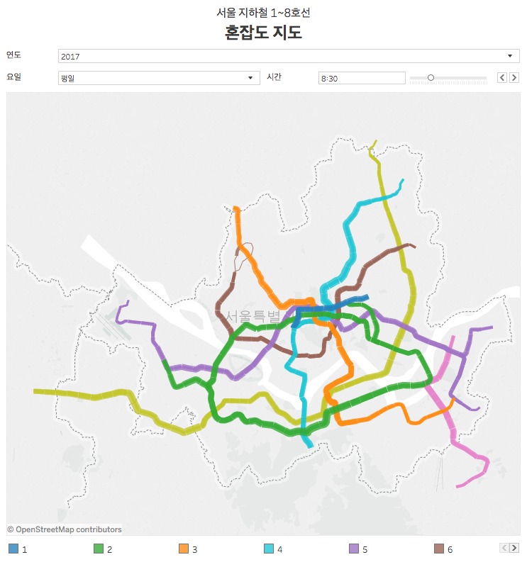 서울교통공사는 2년에 한 번씩 1~8호선 혼잡도를 측정해 이듬해 초 발표합니다. 이번에 다루는 2017년 혼잡도는 뉴스래빗이 지난 기사에서 다룬 2015년 데이터 이후 최신 자료입니다.