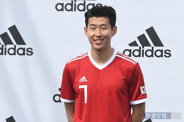 손흥민(26, 토트넘 홋스퍼)이 15일 오후 서울 용산 아이파크몰 내 아디다스 더 베이스 서울 풋살장에서 열린 '아이다스-손흥민 후원 연장 계약 체결' 행사에 참석해 포즈를 취하고 있다.
