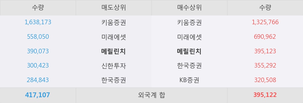 메릴린치가 매수상위 창구 3위를 기록중이고, 그 외에 키움증권, 미래에셋 등이 매수 창구 상위에 위치하고 있다. 한편, 매도 창구 상위에는 메릴린치가 눈에 띄고 있다.