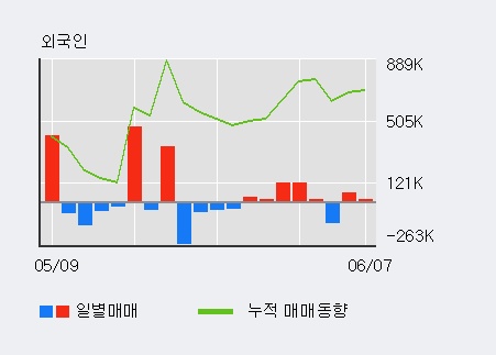 한편 외국인은 이 종목에 대해서 최근 4일 연속 27.5만주 순매수를 하고 있다. 더욱이 전일 외국인이 대량 순매수를 하고 있어 투자자들의 관심이 집중되고 있다.