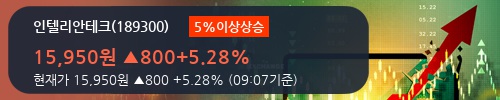 인텔리안테크가 장 초반 부터 전일 대비 +5%이상 상승하고 있다. 05일 오전 09시 07분 인텔리안테크는 전 거래일보다 5.28% 오른 15,950원에 거래되고 있다. 주가의 흐름을 살펴보면 15,600원으로 개장해서 장중에 밀리지 않고 계속 상승해서 15,950원(+5.28%)까지 소폭 상승하고 있다.