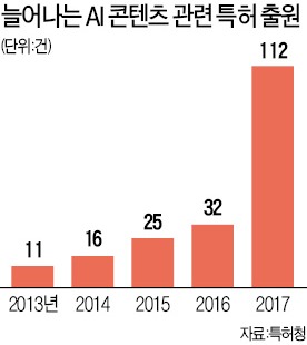 6일 특허청에 따르면 디지털 콘텐츠 제작 관련 AI 특허 출원은 2013년 11건에 불과했지만 지난해 112건으로 열 배 이상 증가했다.