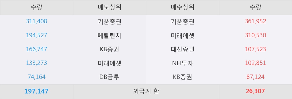 현재 거래원 동향은 키움증권, 미래에셋, 대신증권 등이 매수 상위 목록에 나타나고 있다. 한편, 매도 창구 상위에는 메릴린치가 눈에 띄고 있다.
