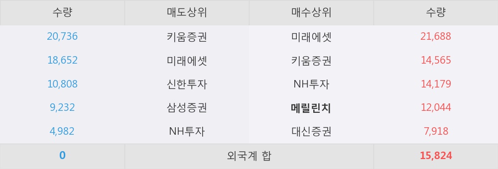 메릴린치가 매수상위 창구 4위를 기록중이고, 그 외에 미래에셋, 키움증권 등이 매수 창구 상위에 위치하고 있다.