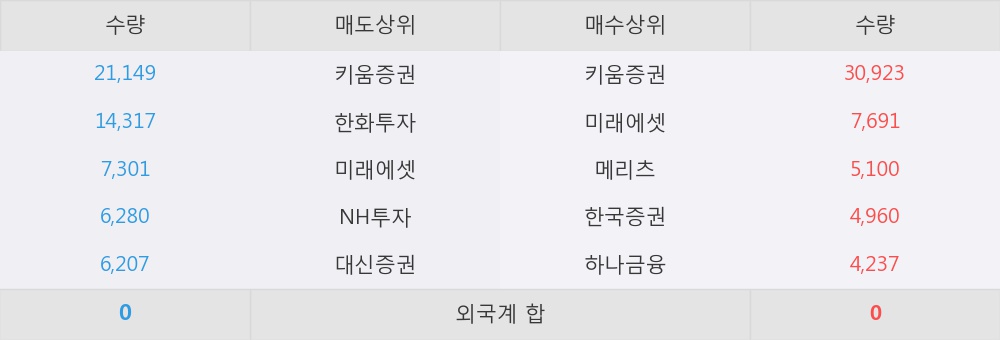이 시각 주요 거래원은 메리츠, 키움증권, 미래에셋 등이 매수 상위 창구에 자리하고 있다.