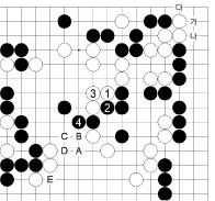 전보 마지막 수로 흑이 최강수를 두었고, 백120은 백 대마에 대한 자신감의 표현이다. 참고도1은 백이 후퇴한 것인데 물러서서 약점이 더 많아진 결과다. 이후 중앙은 흑이 A~E의 수순으로 큰 수를 낼 수 있다. 또 여차하면 흑이 가~나의 수순으로 백의 안형을 없애면서 대마를 잡자고 할 수도 있다.예상대로 흑은 121로 차단했고 백은 122·124로 사는 모양을 잡는다. 흑131은 최강수로, 사활의 급소다. 백132는 정수로 133에 두어 차단하면 흑이 132에 두어 A에 약점이 생긴다. 백이 지킬 수밖에 없을 때 상변 백 눈 모양을 없애면 대마가 잡힌다.