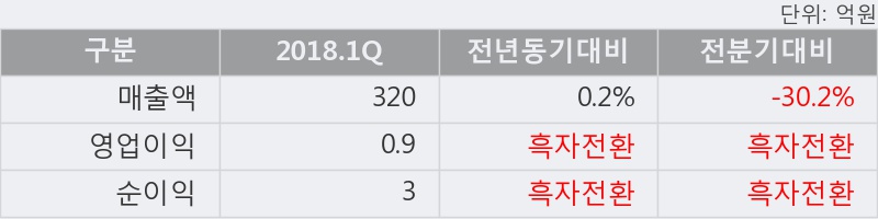 - 2018.1Q, 매출액 320억(+0.2%), 영업이익 0.9억(흑자전환)