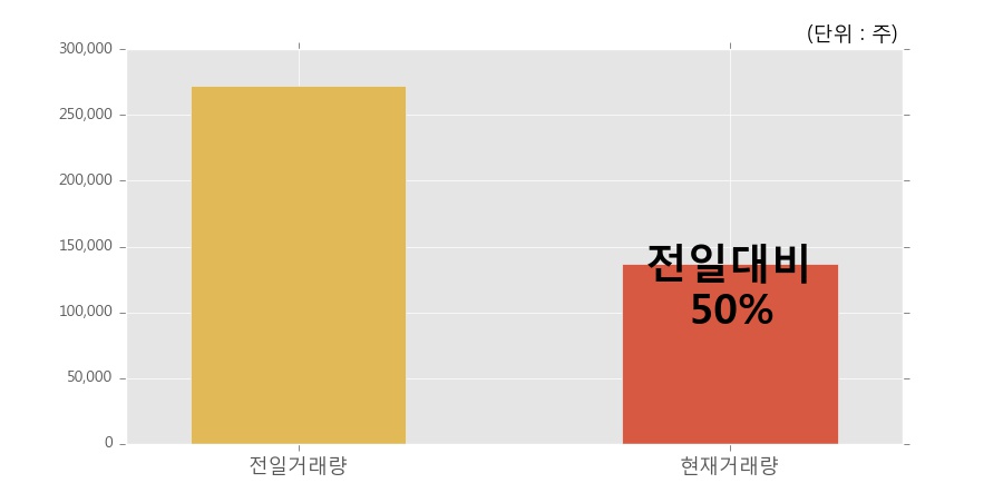 개장 후 지금까지의 거래량은 전일의 50% 수준으로 흐름상 오늘 거래량은 전일 수준을 넘어설 것으로 예상된다.