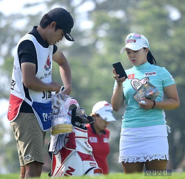 '비씨카드·한경 레이디스컵 2018'(총상금 7억 원, 우승상금 1억 4000만 원) 2라운드 경기가 22일 경기도 안산시 대부도 아일랜드CC에서 열렸다. 경기에 출전한 이효린(21, 요진건설)이 1번 홀에서 티샷을 준비하고 있다.