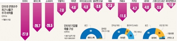최근 급락한 트위터·페이스북