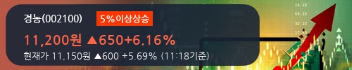 04일 오전 11시 18분 현재 경농은 전 거래일보다 5.69% 오른 11,150원에 거래되고 있다. 주가의 흐름을 살펴보면 11,150원으로 개장해서 장중에 10,700원(+1.42%)에서 11,200원(+6.16%)까지 큰 폭으로 급등락하다가 현재는 11,150원(+5.69%)으로 시가수준에서 머물고 있다.