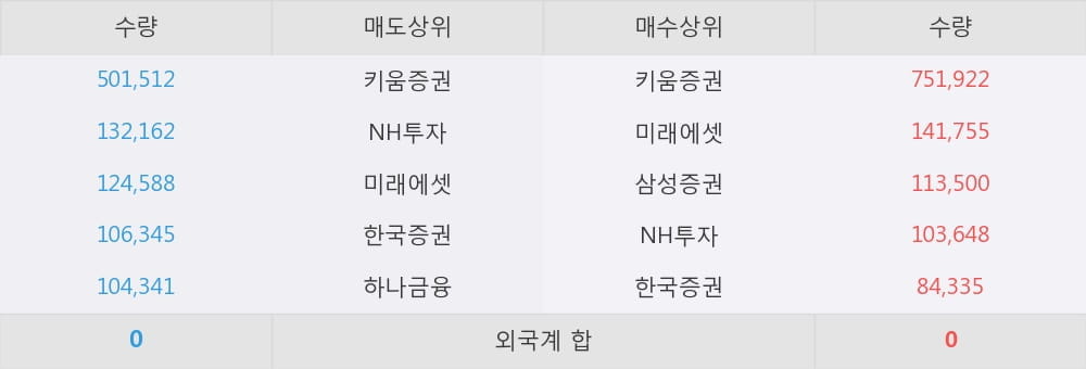 거래원 동향은 미래에셋, 삼성증권, NH투자 등이 매수 상위 목록에 나타나고 있다.
