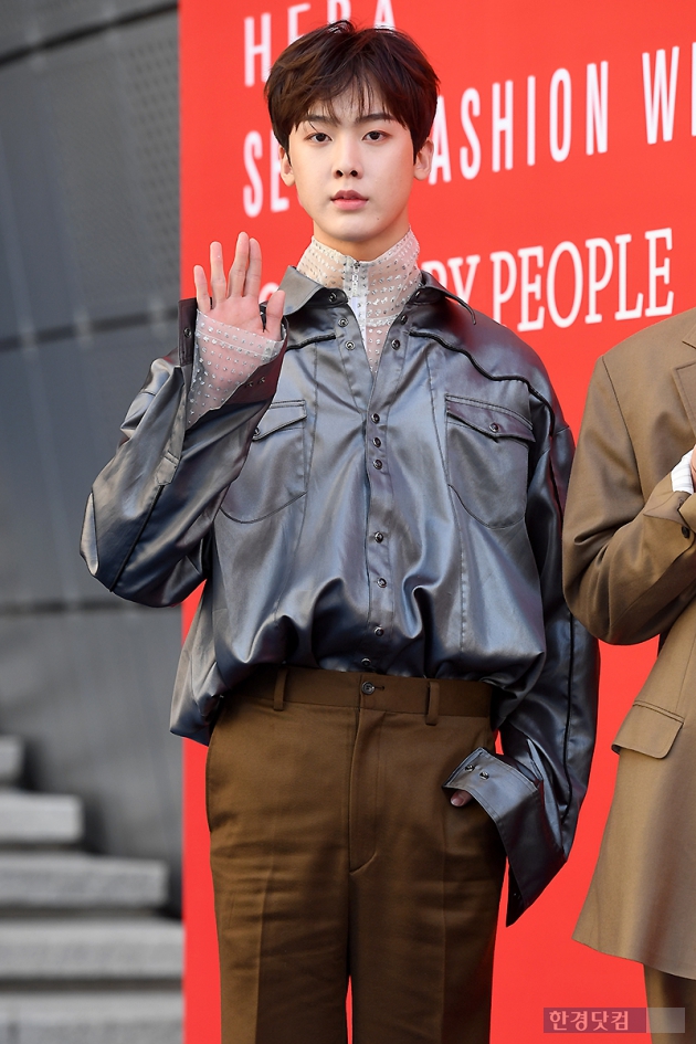 그룹 아스트로 윤산하가 20일 오후 서울 동대문디자인플라자(DDP)에서 열린 '2019 S/S 헤라서울패션위크' ORDINARY PEOPLE(오디너리 피플, 장형철 디자이너) 패션쇼에 참석해 포토타임을 갖고 있다.변성현 한경닷컴 기자 byun84@hankyung.com기사제보 및 보도자료 newsinfo@hankyung.com