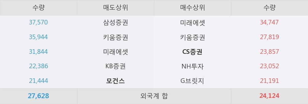 거래원 동향은 CS증권, 미래에셋, NH투자 등이 매수 상위 목록에 나타나고 있다. 한편, 매도 창구 상위에는 모건스가 눈에 띄고 있다.