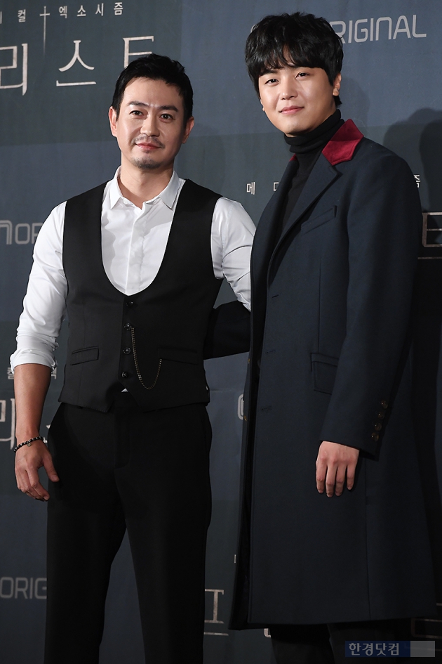 배우 박용우, 연우진이 12일 오후 서울 여의도 콘래드 호텔에서 열린 OCN 오리지널 '프리스트'(극본 문만세, 연출 김종현) 제작발표회에 참석해 포토타임을 갖고 있다.