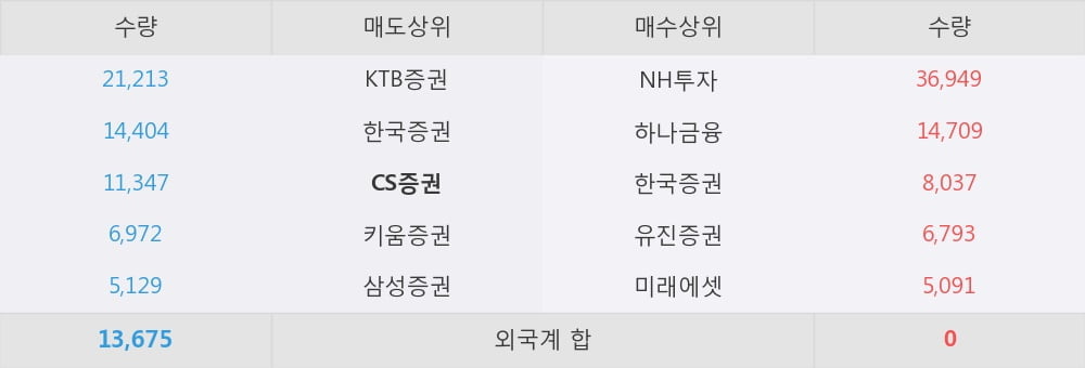 거래원 동향은 NH투자, 하나금융, 미래에셋 등이 매수 상위 목록에 나타나고 있다. 한편, 매도 창구 상위에는 CS증권이 눈에 띄고 있다.