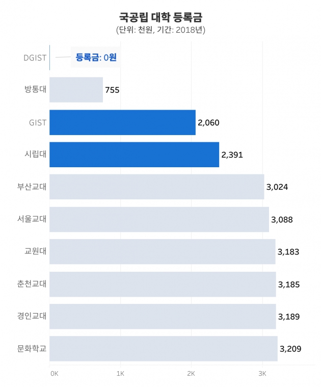 Tip) '과학기술원'-'교대' 등록금이 싸다