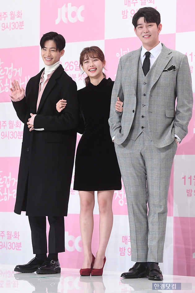 배우 송재림, 김유정, 윤균상이 26일 오후 서울 영등포 타임스퀘어 아모리스홀에서 열린 JTBC 새 월화드라마 '일단 뜨겁게 청소하라'(극본 한희정, 연출 노종찬) 제작발표회에 참석해 포토타임을 갖고 있다.