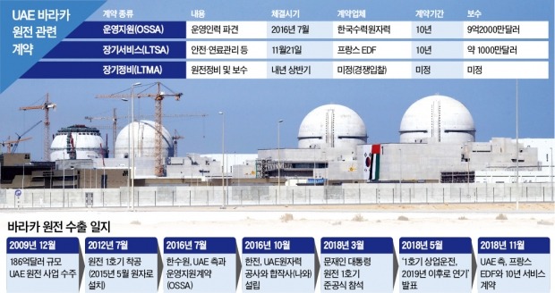 2016년 ‘60년 동안 54조원 규모 UAE 원전의 독점 운영권을 확보했다’고 발표한 내용도 부풀려진 것 아니냐는 얘기도 나온다. 60년은 바라카 원전의 설계수명 기간이다. 정부 한 관계자는 “UAE와 원전 운영권 관련 계약을 맺은 건 10년간 운영인력을 파견한다는 게 전부”라고 했다. 이런 상황에서 핵심 운영권인 장기정비계약을 한국이 놓칠 경우 UAE 원전 운영권이 사실상 통째로 날아갈지도 모른다는 게 업계 관측이다.
