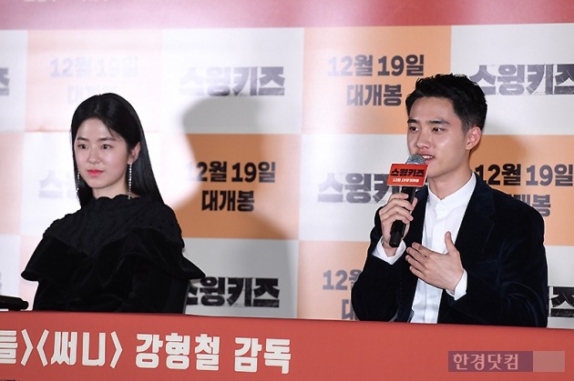 도경수는 4일 서울시 용산구 CGV아이파크몰에서 진행된 영화 '스윙키즈' 시사회에서"극중 박혜수 씨와 키스신은 정말 위험했다"며 "찍으면서 이가 많이 아팠다"고 전해 웃음을 자아냈다.