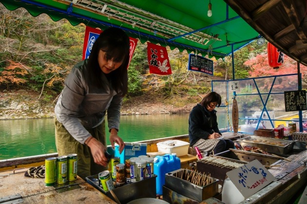 커다란 배를 움직이는 사공은 한 명뿐. 얼마 전 한국에 여행 가서 친구랑 소주를 실컷 마셨다가 배탈 때문에 고생했다는 사공은 긴 대나무로 강바닥을 이리저리 밀며 배를 움직인다. 바위에 부딪힐 것 같으면 재빨리 손을 뻗어 배를 밀어내 충돌을 막는다. 능숙한 항해 덕분에 단풍에 물든 아라시야마의 산을 바라보며 느긋한 시간을 보낼 수 있었다.