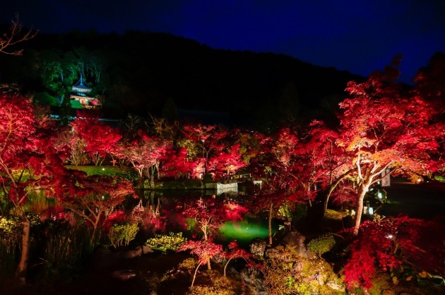 일본에서 에이칸도는 교토의 아름다운 가을을 즐기기 좋은 명소로 통한다. 경내에 3000그루에 가까운 단풍나무가 활활 타오르는 듯한 경치가 압권. 특히 11월부터 시작되는 야간 라이트업 시기가 되면 많은 인파가 몰린다. 라이트업은 오후 5시 반부터 9시까지 이어지며 경내를 화려하게 밝힌다. 입장 1시간 전부터 줄을 서서 기다리는 사람들이 가득해 발 디딜 틈이 없다.