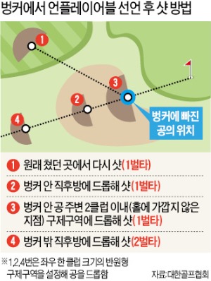 모래 턱에 박혀서 샷 어려울 땐 2벌타 먹고 벙커 밖서 쳐도 돼