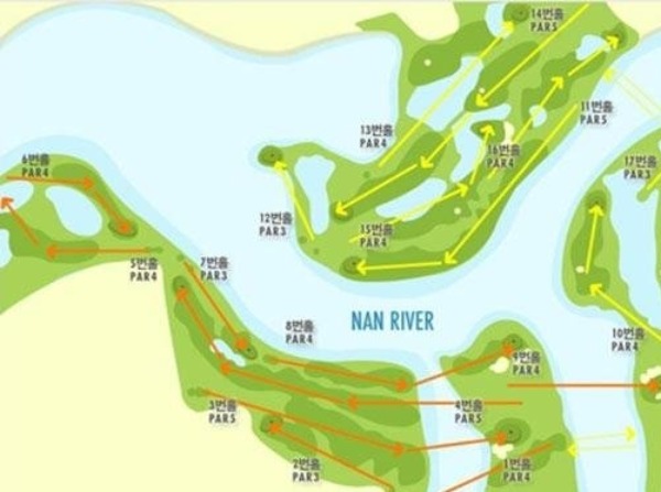 해당 골프장은 안을 강이 흐르는 형태라 이동하기 위해서는 바지선 형태의 수송선에 탑승해야 했다.