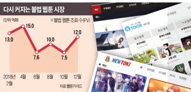 정부가 대대적인 단속에 나서도 일시적 효과만 있을 뿐 불법 콘텐츠 사이트가 끊임없이 생겨나는 게 문제다. 국내 최대 불법 웹툰 사이트 ‘밤토끼’가 지난해 폐쇄됐지만 얼마 지나지 않아 유사 사이트가 잇따라 나왔다. 웹툰산업 분석업체인 웹툰가이드에 따르면 밤토끼 폐쇄 후 불법 웹툰 사이트 조회수(PV)가 지난해 6월 7억6000만 건까지 떨어졌다가 지난해 말 12억 건으로 다시 늘었다.