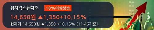 31일 오전 11시 46분 현재 위지윅스튜디오는 전 거래일보다 10.15% 오른 14,650원에 거래되고 있다. 주가의 흐름은 13,350원으로 개장해서 장중 한때 13,050원(-1.88%)까지 살짝 밀렸지만, 다시 큰 폭으로 올라서 현재 14,650원(+10.15%)까지 상승하고 있다.