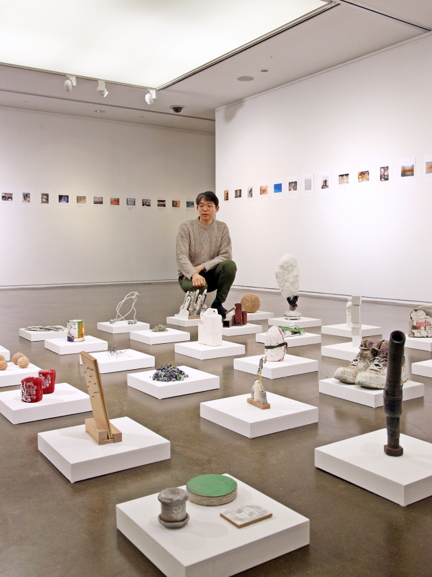 이번 전시에 출품된 <석부작>(2016), <Casting>(2018) 등이 대표작이다. 전시 설치를 하며 나온 각종 쓰레기 등 부산물들을 작품으로 바꿔버린 <현장콜렉션>과 페인터(painter)라고 불리는 두 직종, ‘화가’와 ‘도장공’의 차이는 무엇인가 질문을 던지며 제작된 <페인터> 등이 대표적이라 할 수 있다.