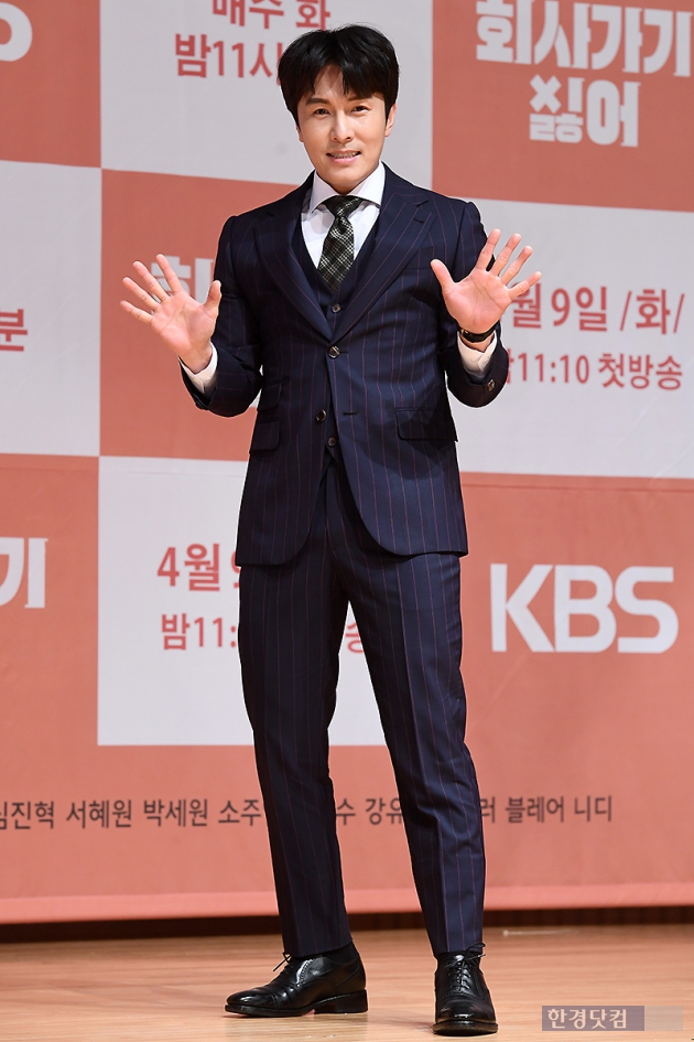 배우 김동완이 8일 오전 서울 여의도 KBS아트홀에서 열린 KBS 2TV 초밀착 리얼 오피스 드라마 '회사 가기 싫어' (연출 조나은, 서주완) 제작발표회에 참석해 포토타임을 갖고 있다.
